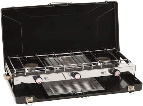 Outwell Portable Stove Appetizer Trio| 2 x 1500W Burner and 1500W Grill| Connects To An LGP Gas Cylinder| Great For BBQ's/Camping|Black.