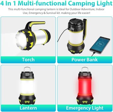 【USB Rechargeable & Large Capacity Power Bank】Built-in rechargeable batteries,the lantern flashlights can be charged via regular 5V USB charging cable (included), more convenient and eco-friendly than other lanterns which need AA batteries. The lantern searchlight can also serve as a 1000mAh power bank to charge android, ios and other smart devices in emergency that no need to worry about losing contact due to a dead phone during the trip