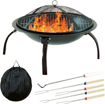Neo Large Black Fire Pit Folding Steel BBQ Camping Garden Patio Outdoor Heater Burner & Cover (2 Marshmallow Packs).