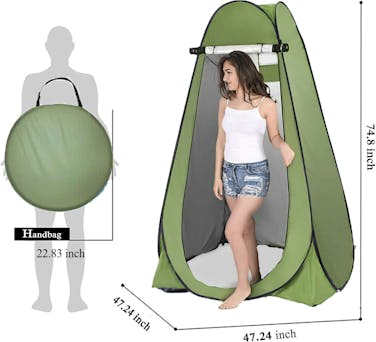 ▲【Instant Set-up】: Quickly turn on the toilet tent in one minute. The method of setting up is very simple. It is a must-have travel accessory for your next adventure! The pop up toilet tent is very suitable for outdoor activities, such as beaches, camping, fishing, outings, etc.