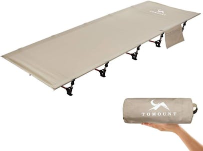TOMOUNT Camping Cot Folding Bed Lightweight Aluminum Poles Compact Portable Camp Bed Easy to Build Resilient Camping Bed for Tents, Office, Outdoor Hiking, Trips, Beach - Khaki.